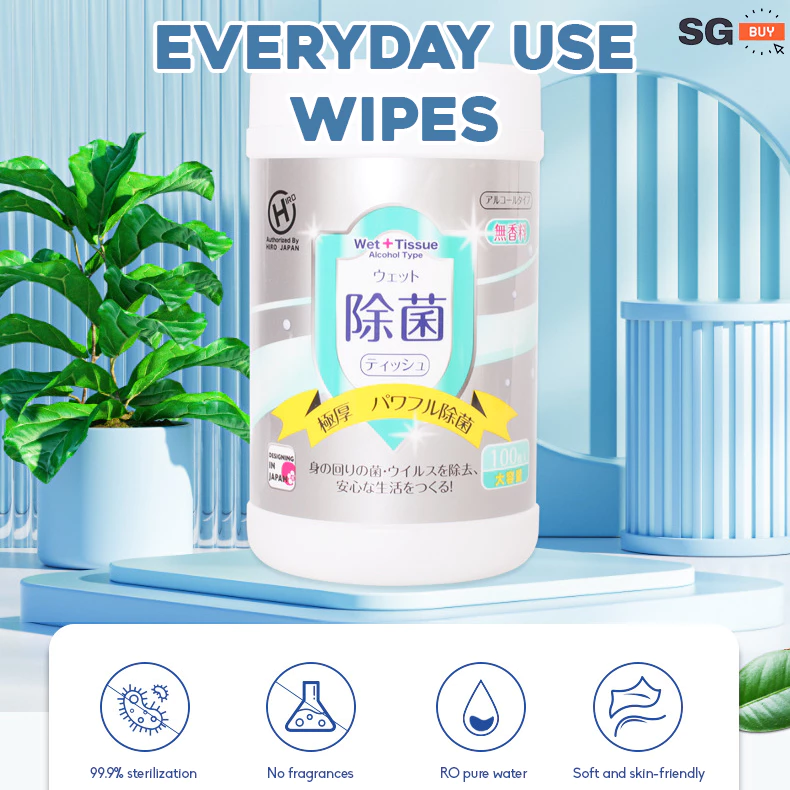 [$3.49/Tub] Japanese Design 100 Pc Alcohol Wipes Alcohol Wipe Disinfectant Wipes Wet Tissue Wet Wipes Antibacterial