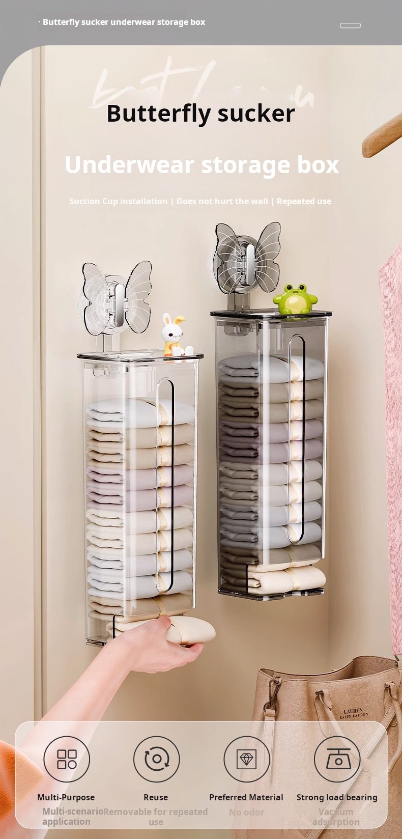 Be the first to review “Butterfly Suction Cup Underwear Storage Box with Lid, Wall-Mounted Underwear Organizer (PACK OF 4)” Cancel reply