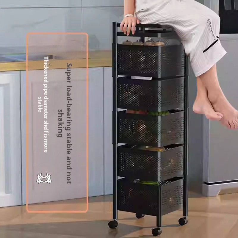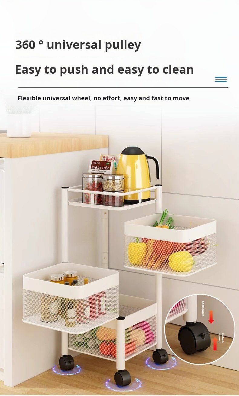 Kitchen rotating storage rack, home floor-standing multi-layer snack box, living room fruit and vegetable basket, small trolley storage rack, mobile