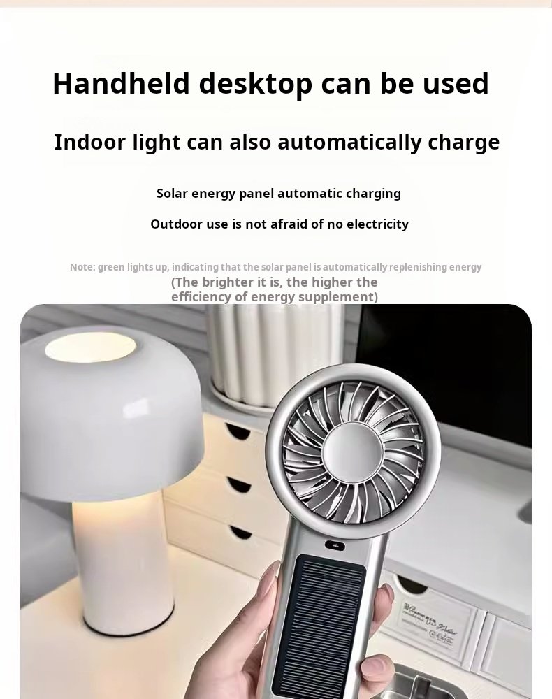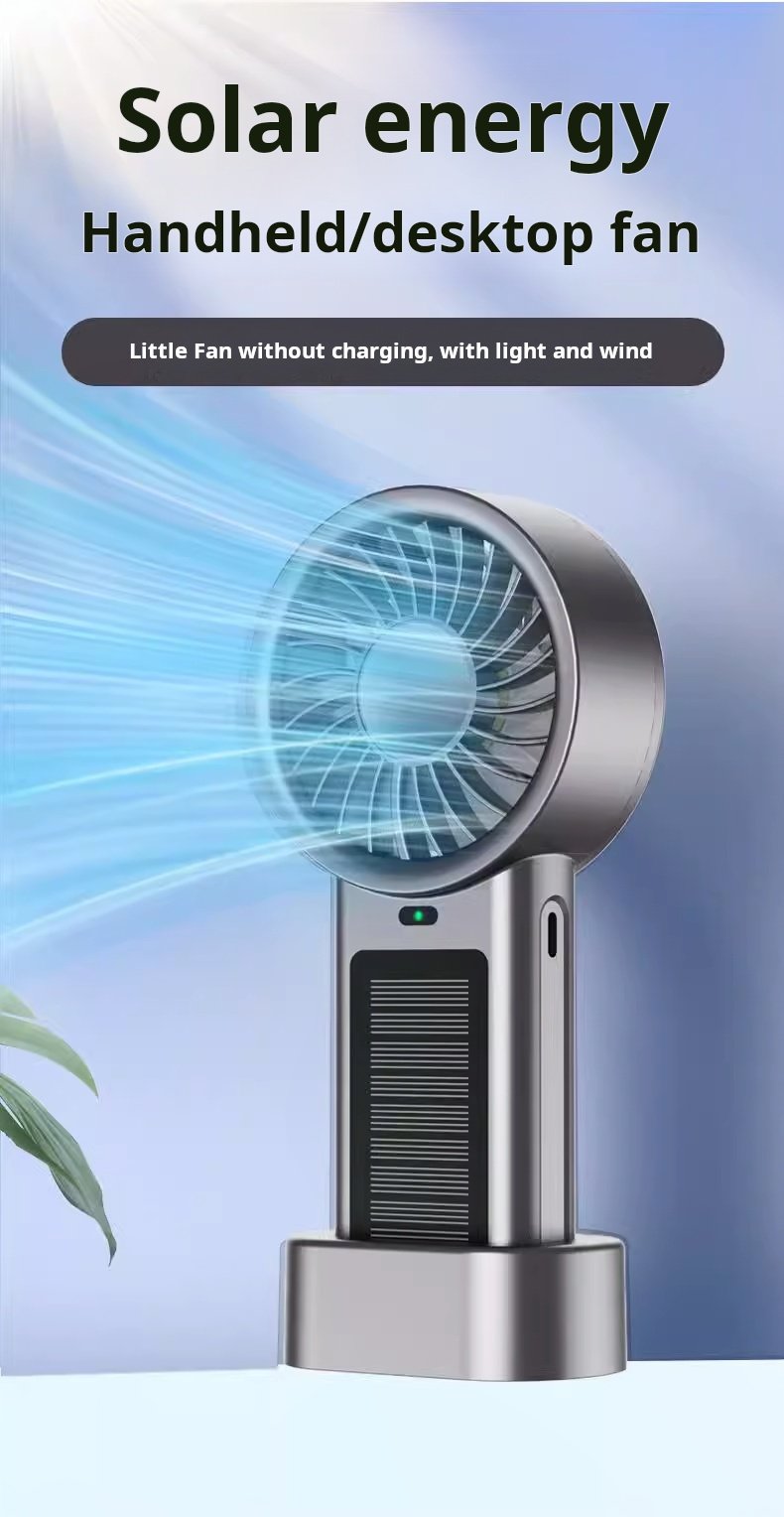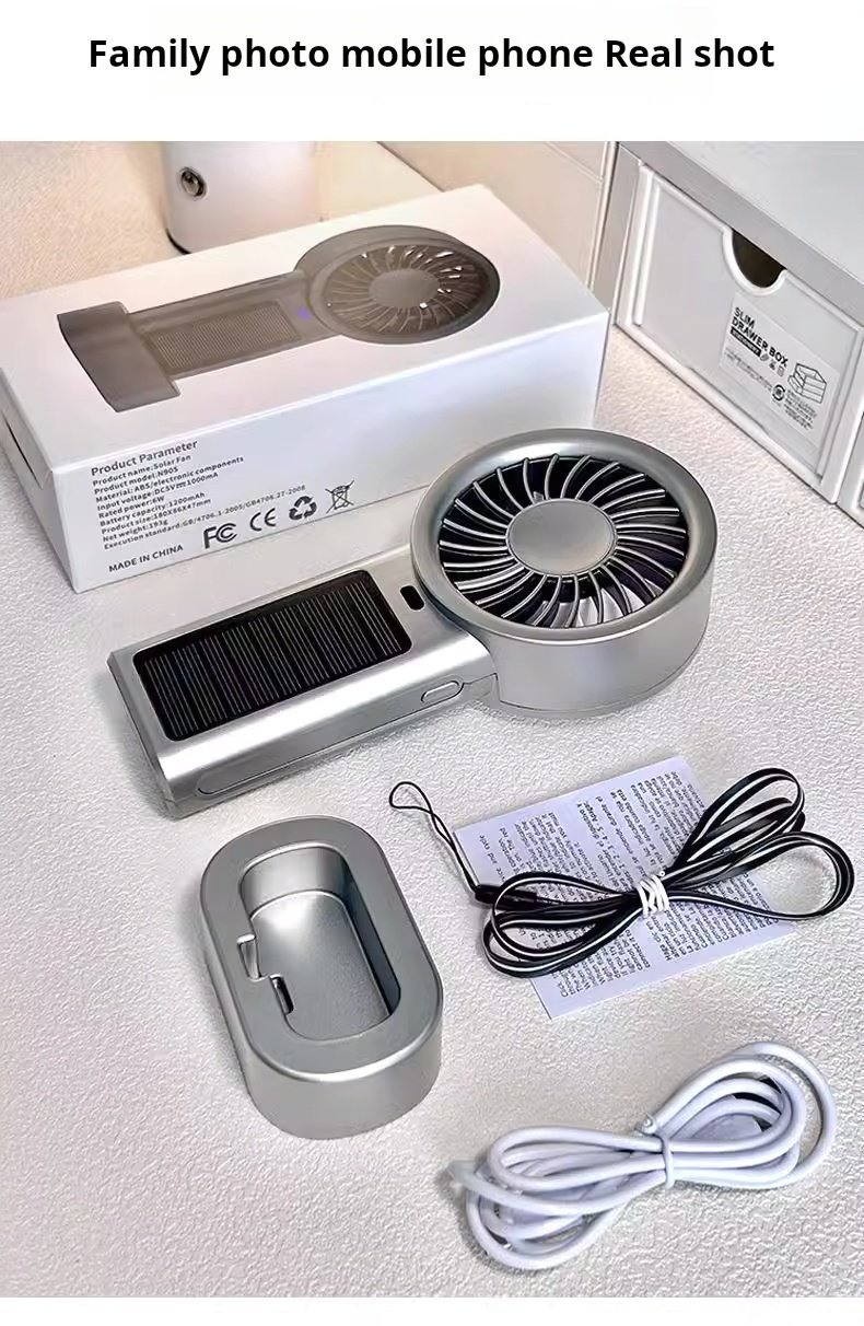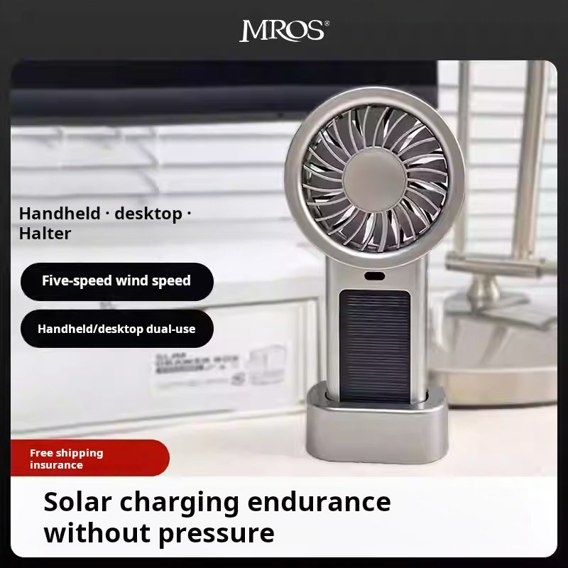 Mros Solar-Powered Handheld Desktop Fan, Portable, Outdoor USB Rechargeable for Summer.