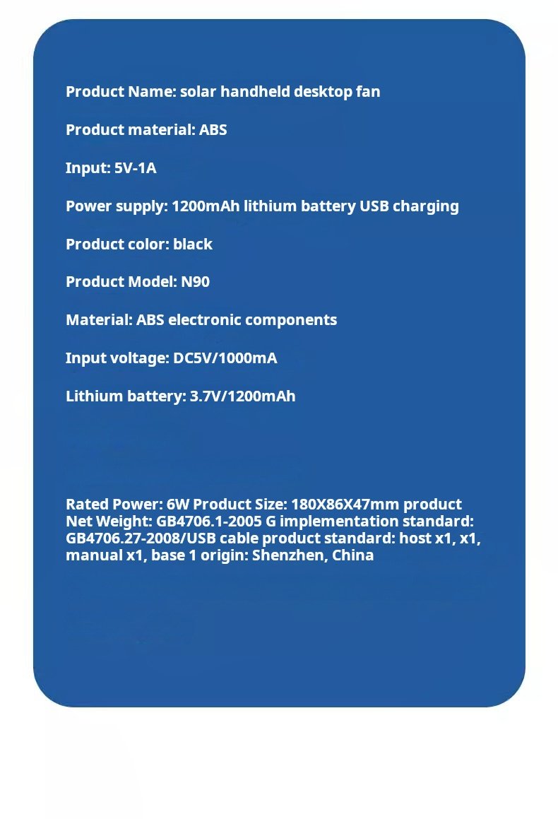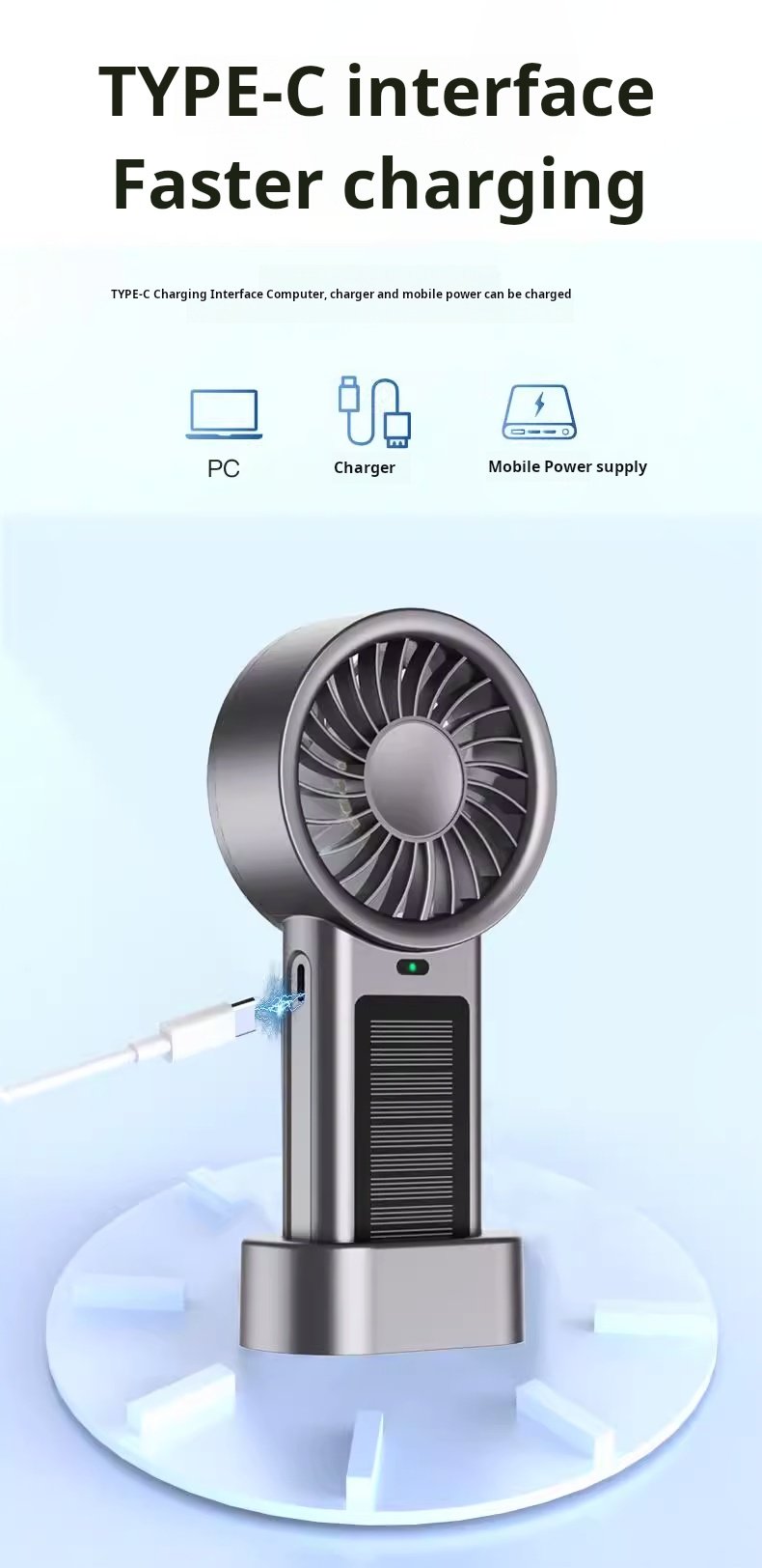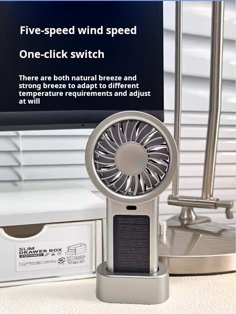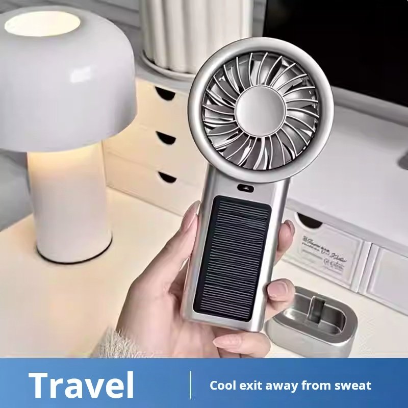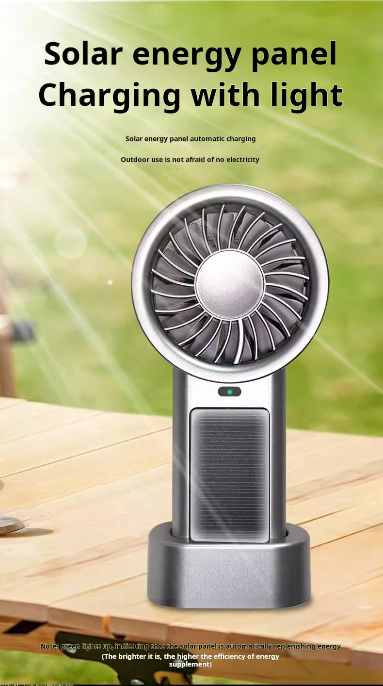 Mros Solar-Powered Handheld Desktop Fan, Portable, Outdoor USB Rechargeable for Summer.