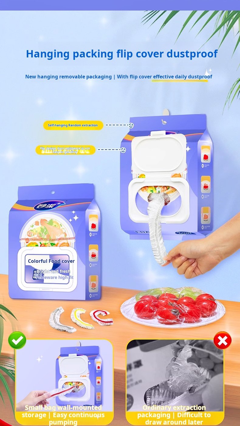 Disposable Food Cover Pull-Out Flip-Top Household Refrigerator with Elastic Opening Plastic Wrap Cover Plastic Wrap Set (PACK OF 10)