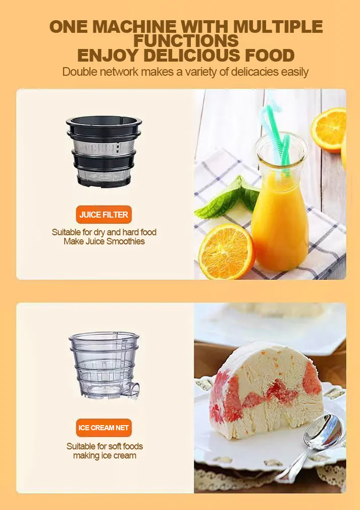 Pulp Separation Juicer, Home Use Multi-Function Large-Capacity Juicer, High-Power Ice Cream Maker, Fresh Juice Extractor