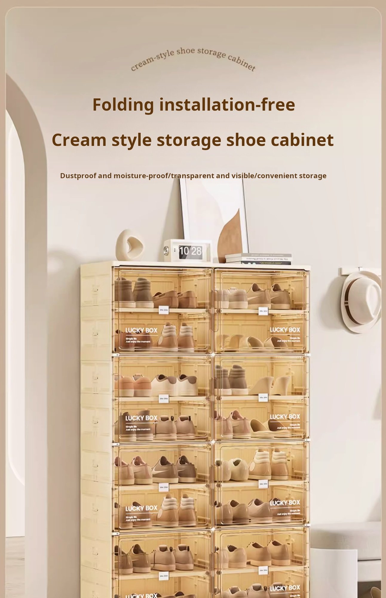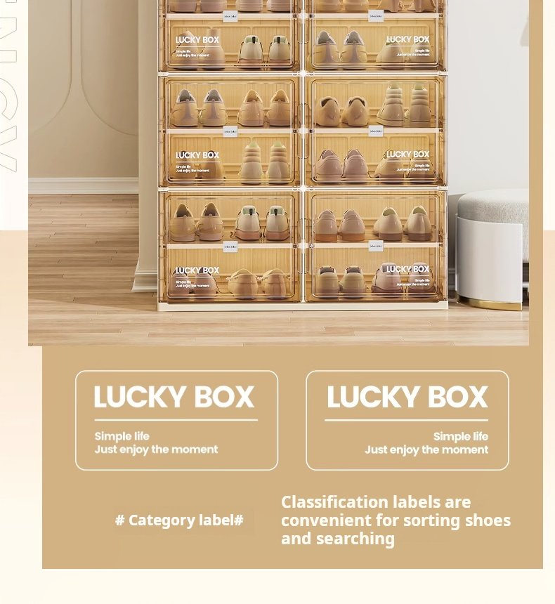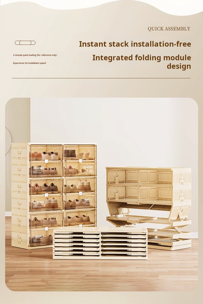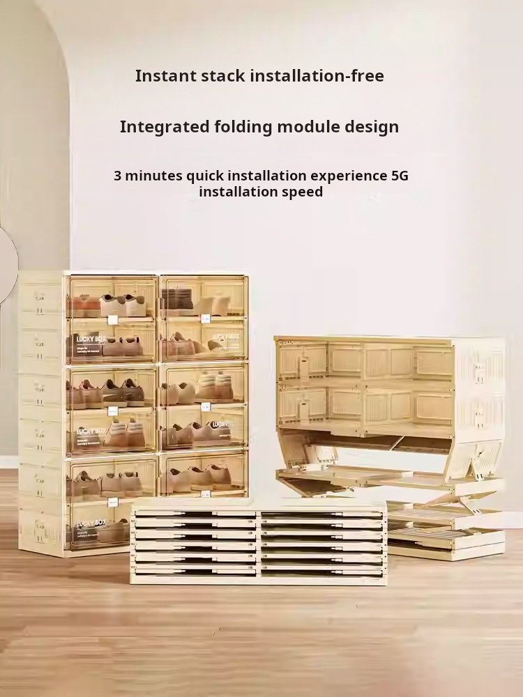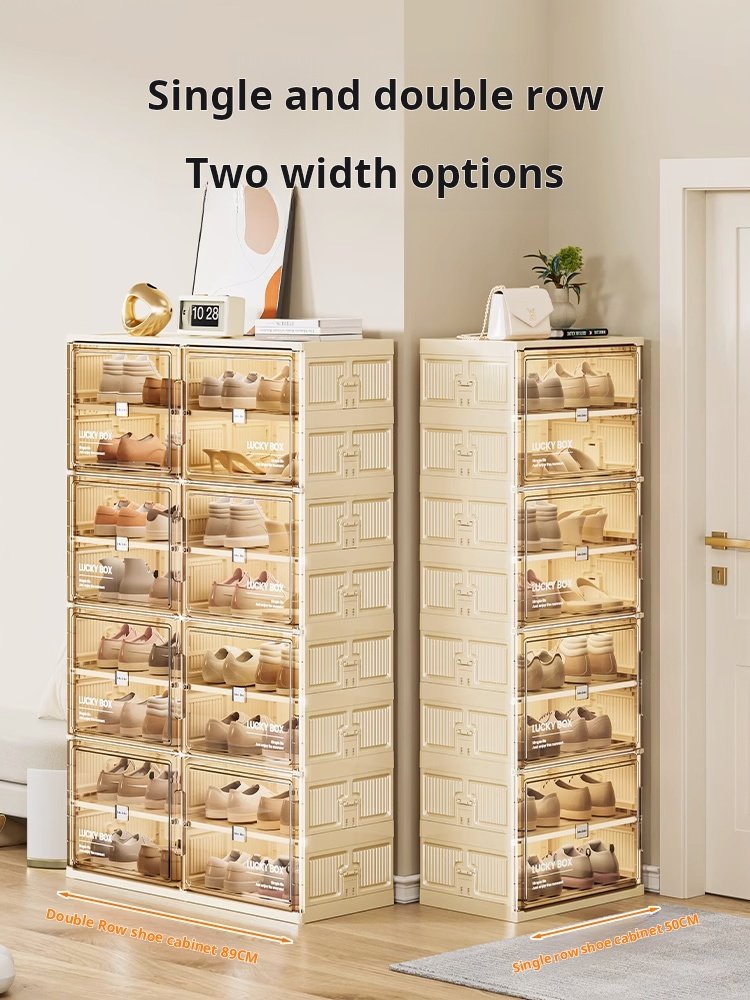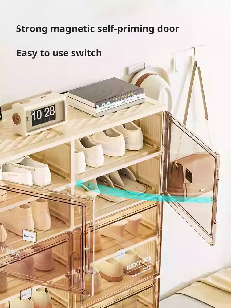 Storage Box Shoe Cabinet Shoe Rack Transparent Household Doorway Dustproof Plastic No Installation Required One-piece Simple Cream Style