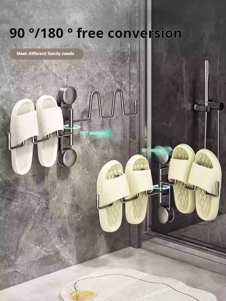 Suction Cup Balcony Slipper Rack Bathroom No-Drill Rotating Shoe Storage Wall-Mounted Foldable Drain Rack (PACK OF 4)